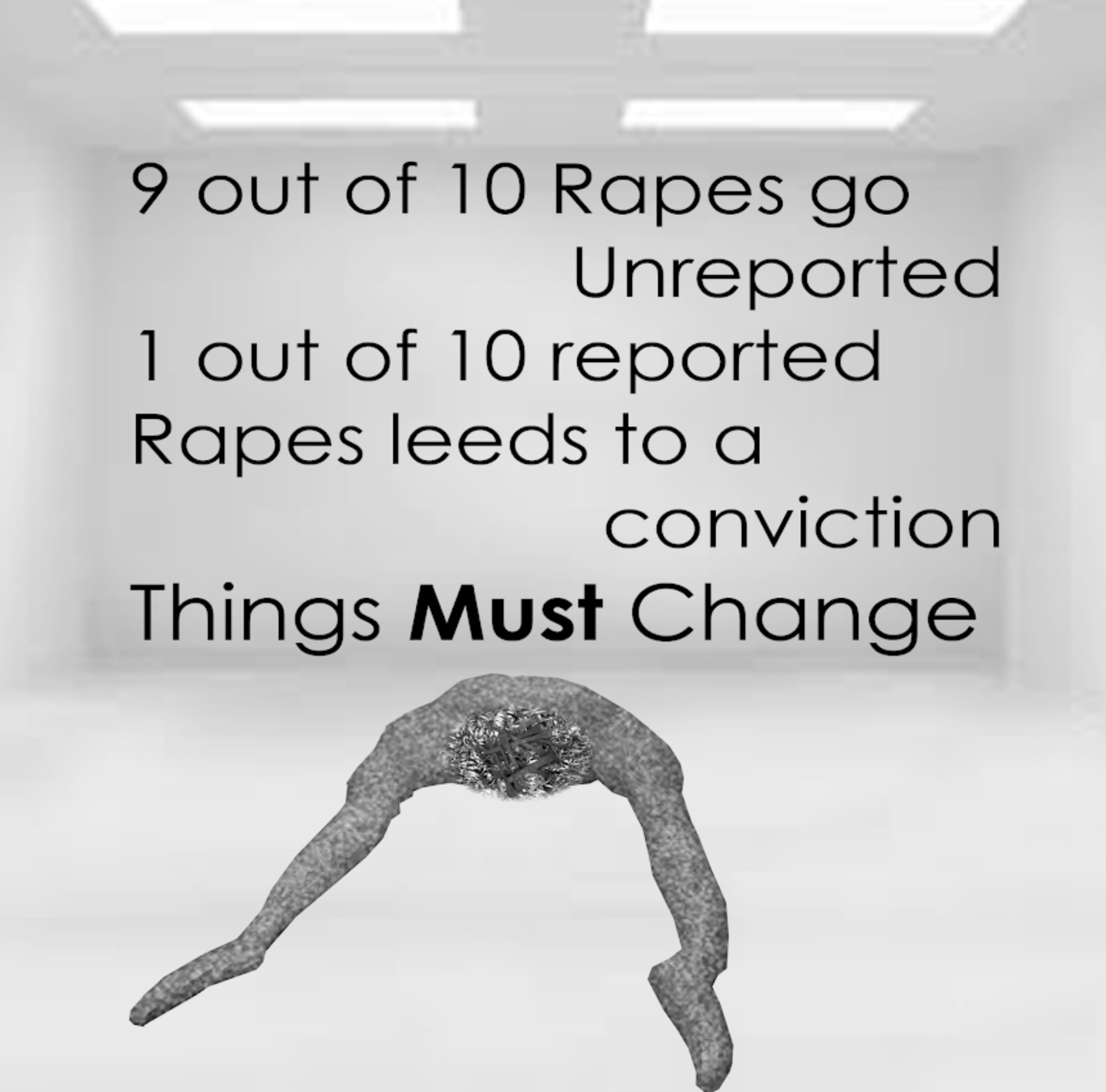 For this feminist art installation, Little proposed the use of found objects to create an extreme, visceral piece symbolising sexual violation. The work would feature polythene material shaped to resemble the lower body of a woman, severed at the waist and discarded like a dehumanised, unwanted object. The polythene form would be filled with heavy, dark gravel to represent the weight and damage carried by survivors.
