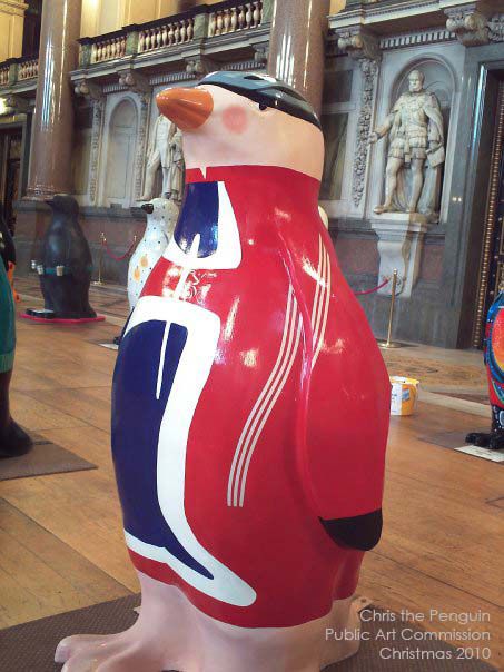 This is “Chris the Penguin”, a unique painted sculpture I created for the 2010 Go Penguin parade in Liverpool. Inspired by the legendary Olympic cyclist Sir Chris Hoy, this artwork combines sport, creativity, and community spirit in one striking design.