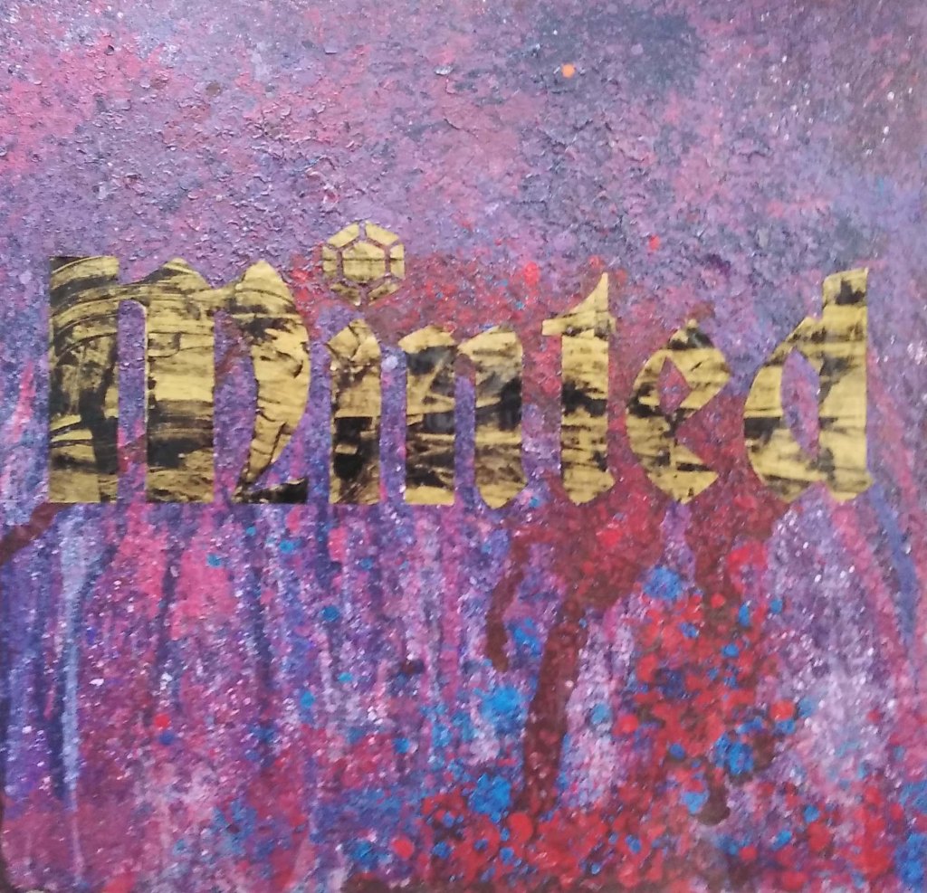 The painting presents maximism of the most extreme, highly patterned, a tactile variation of texture and a mass of colour. The background manipulates acrylic pouring techniques, suggesting that the text has been ‘Slam dunked’ into position. The range of purples, a regal infusion, combined with the Gothic font to imply Royalty. Currently, the Queen’ estates (UK) have lost over 35 million as a result of reduced tourism from coronavirus. The golds of ‘Minted’ have scrapped with black acrylic, perhaps implying ‘Dirty money’. The letters are almost camouflaged within the visual plane, akin to wild animal fur, suggesting revenue and opulence.