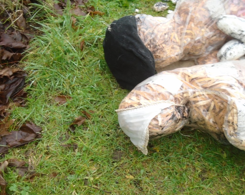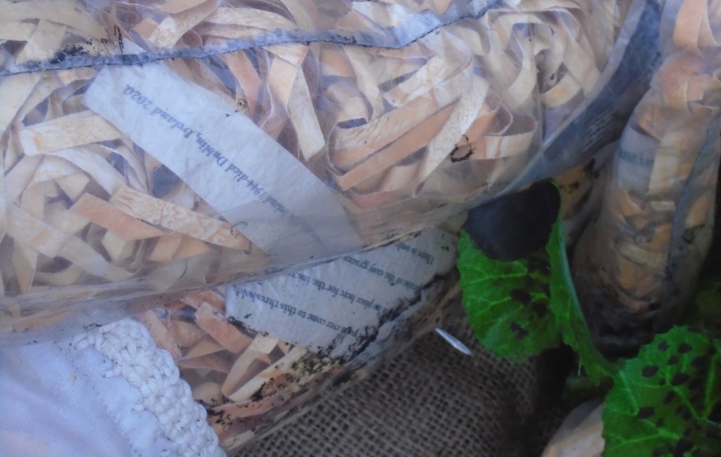 Two, rather soiled, life size figurines from polythene brimming with printed media to represent man and wife. Using related working techniques to that of ‘Jane’ produced for the 2017 Liverpool Irish Festival. The forms contain printed statements, statistics and quotes from the literal work: Quarantine. Quotes to identify with 20-25% of the population which were lost between the famine and emigration. Further linkage over how there was no ban on the export of food as there had been in the famine of 1782-3. Additional items of found object presented, for instance; modelled blighted potatoes, manifesting the poem and the period of An Gorta Mór/The Great Famine.