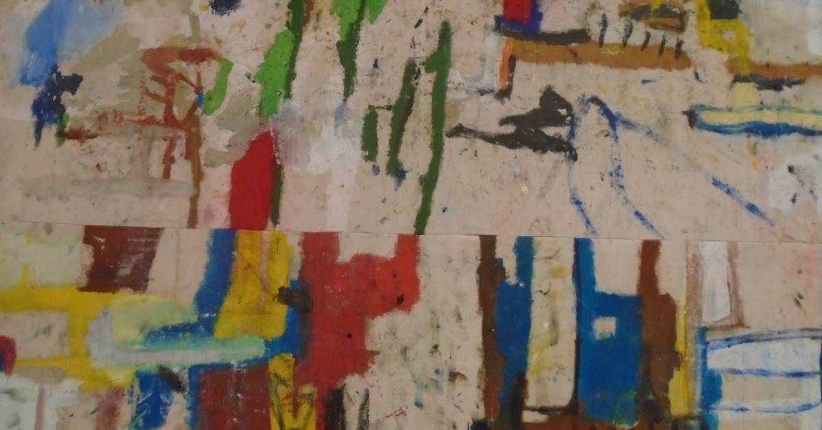 ‘Summer Sequoia’ was painted as a series along the Pacific Ocean, one part Iwate: Japan, Oregon, USA the second. Produced with oils, acrylics and waste matter, shredded at the sea’s shore, painstakingly restitched then mounted on return to the UK. Through the upper section we are presented with Japan, vertical lignage, tree-like marks, possibly the matsu, commonplace in Iwate. United by the indication of long drawn out shadows created by the extremities of the sun in the East. Contrasted by the lower section from the USA, more compact modular structures, possibly buildings but more probably high scaling rock formations. Additional marks indicating a more sizable population. Summer Sequoia brings joy to the lifting of lockdown, a painting to see and an artist to follow.