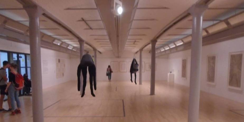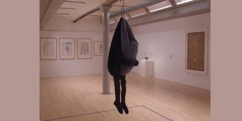 Single II suspends from the ceiling as we transcend the gallery space. Corpse-like, oversized, headless and only an indication of hands and feet, however unquestionably a human form. Bourgeois uses the arch as a symbol of hysteria within her works, highlighted most prominently in ‘Triptych for red room’. On initial inspection the gorged fabric presents us with a male, highly detailed phallic form. Dellaria is often associated as only a female trait, is she implying that the male can become equally frenzied? However, on near-at-eye probe we have additional female sex organs in the area where the head would be positioned. This suggests an exploration of the links between man and woman, a recurring theme throughout her practice. The arch can also be seen as a symbol of tension where muscles are stained to their limits. Is this an example of a climax through orgasm, but of an isolated occasion contrast to the couplet sculpture where the couple are in coitux?