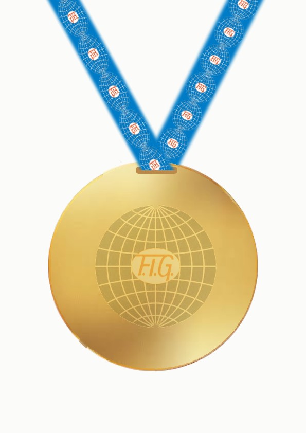 Aesthetically, the hanging ribbon is positioned towards the rear edge of the medal. The use of weave technique, incorporating the FIG logo within the weave. Berisford woven ribbon manufacturers based in Congleton are local manufacturers, minimising environmental impact and supporting the regional economy.