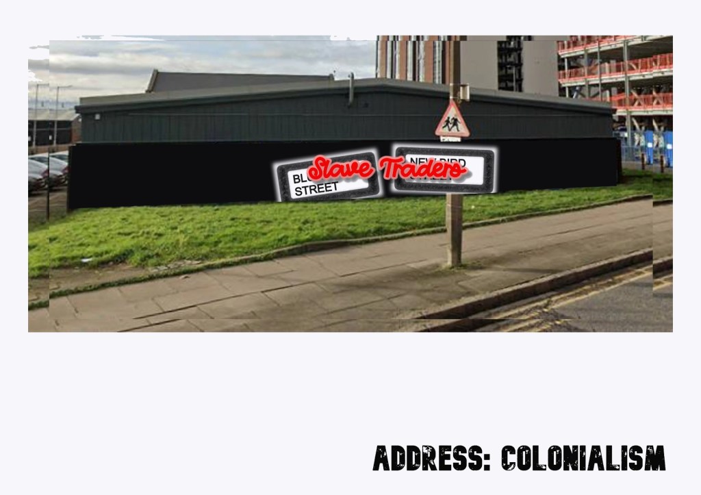 Address: Colonialism mural does not necessarily demand the streets of Blundell and New Bird to be renamed, but it corrects any misconceptions. We brand them righteously as slave traders and not as philantropists or tobacco merchants. We correct the history books and we acknowledge the wrongs of colonialism.