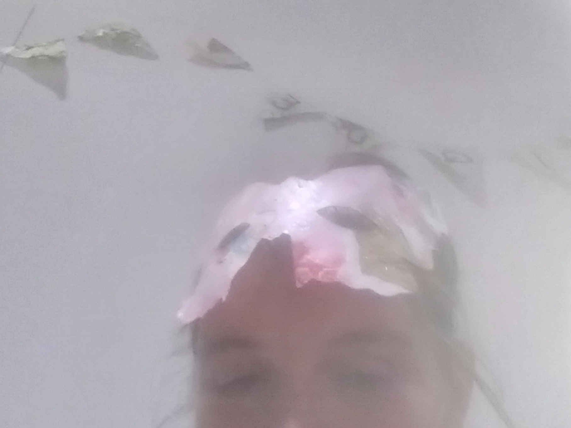 Revelling in reclaimed bags, snipping, layering, all finished off with trusty, sprung bound elastic to make an array of marvellous masks.