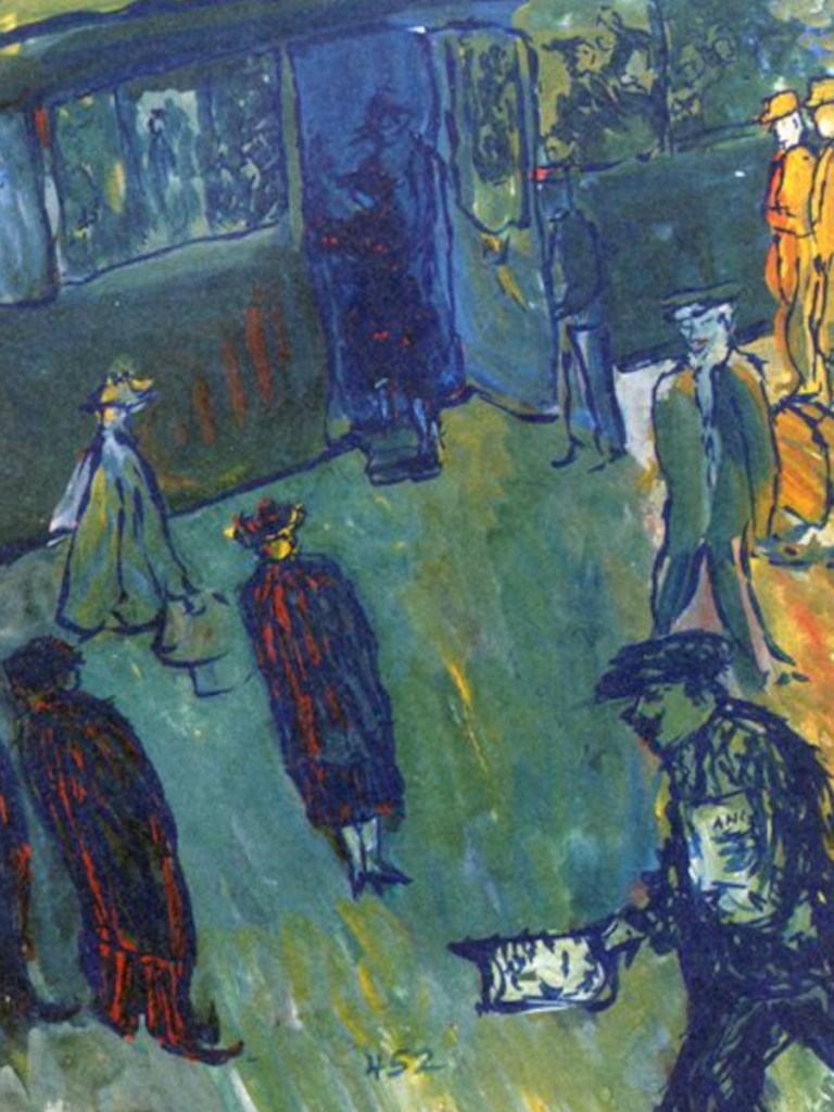 There is unequivocal documentation that Charlotte abhorred her grandfather to the extreme. Through her major works, Life or theatre, she references ‘Preferring to spend 10 more nights like this than a single alone with him.’ This is transcribed onto an overlay of a gouache depiction of herself and her grandfather on a cramped transporter train. They had been briefly sent to a French internment camp, but were released due to his poor health, Charlotte, ironically, in a caring capacity.